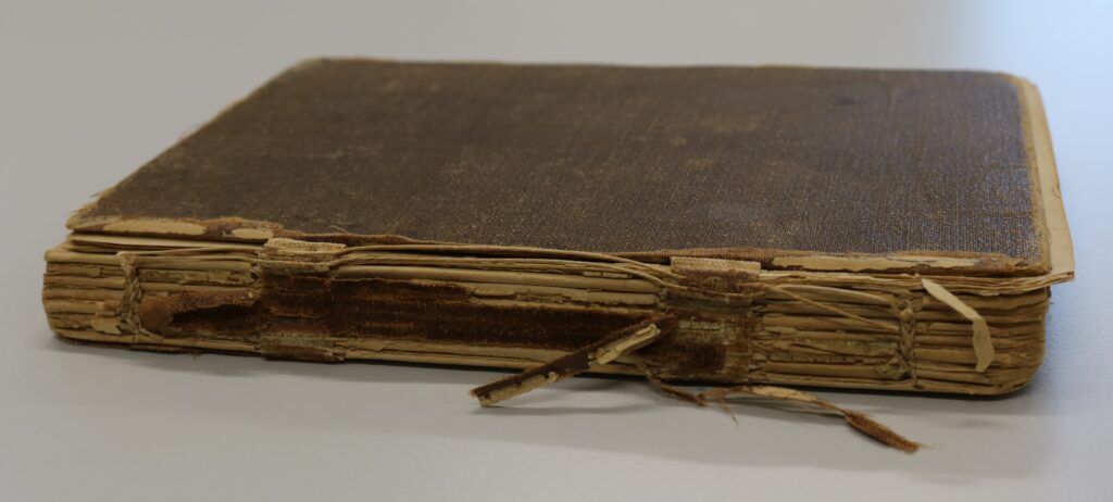 This intriguing and important item (Ref: SL0337) was donated to Museum nan Eilean some years ago, but could not be displayed or made accessible to the public due to its fragile condition. In 2023, the volume was assessed and treated by Richard Aitken, senior conservator at High Life Highland conservation service in Inverness.
